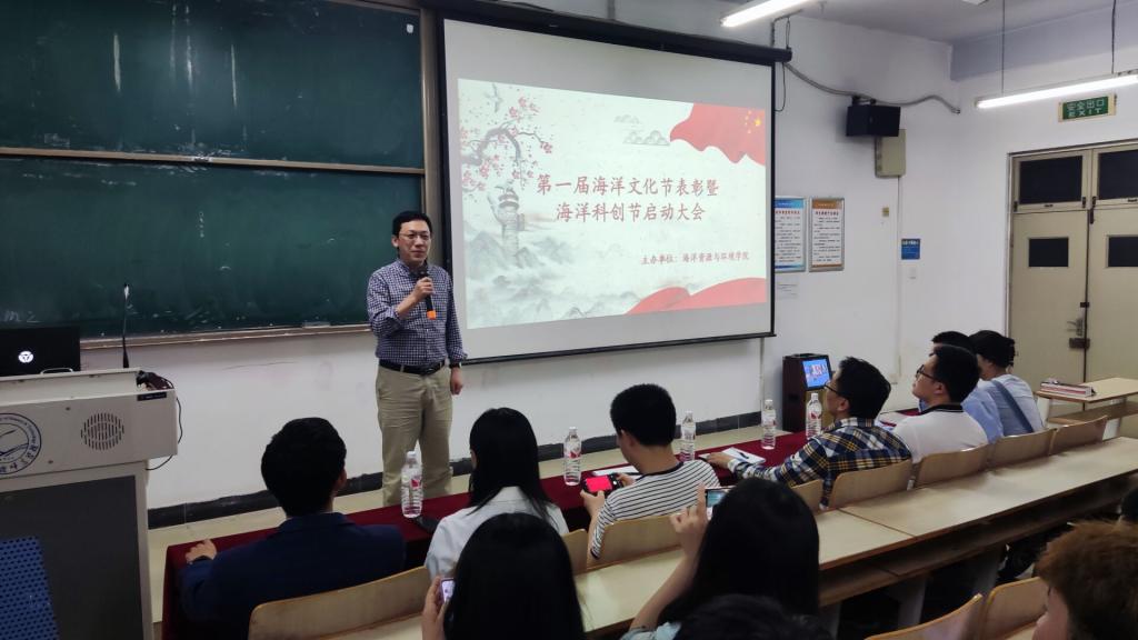 5月19日晚中文字幕无码视频在昌黎校区主教学楼C108举行了海洋文化节表彰暨海洋科创节开幕大会,中文字幕无码视频副院长王青林,学工办主任孙胜显,办公室主任刘升,教师代表,获奖学生代表出席此次大会。
