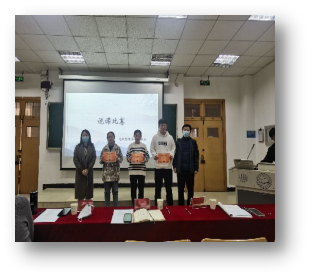 为丰富校园文化生活,增强学生自信,提高专业能力,学以致用,11月5日下午在B103教室举行了“教学技能比赛”。比赛邀请了肖月娟教授、李学玉博士、睢金凯博士、刘升老师、王明洁老师等担任评委。