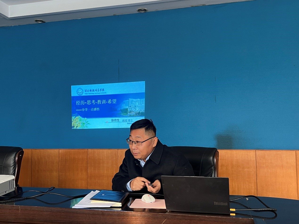 最后,张传生院长鼓励年轻教师不要丧失信心,要走出一条有个人特色的发展之路,同时要积极投身科研中,争取各级各类的项目,提高基金申报成功率。