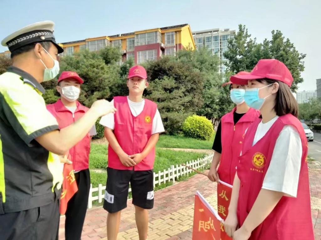 向小区居民宣传道路交通安全法律法规,传递“文明交通 从我做起”的正能量。